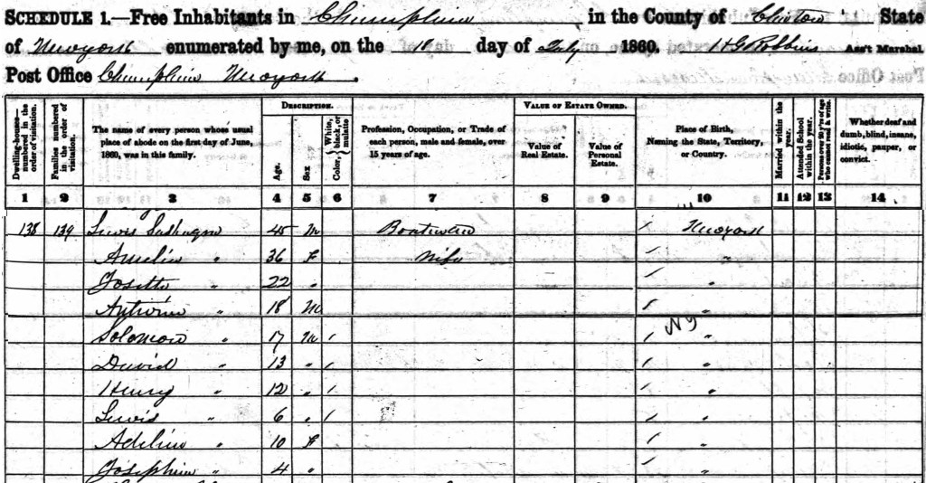 Source: 1860 US census, Clinton County, New York, population schedule, Champlain Township.