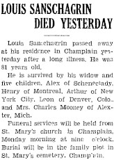- “Louis Sanschagrin Died Yesterday,” Plattsburgh Daily Press, July 22, 1933, 5.
